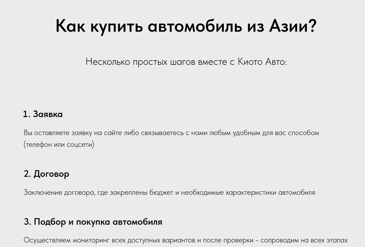 Чтобы заказать машину в Kioto auto потребуется выполнить следующие действия: