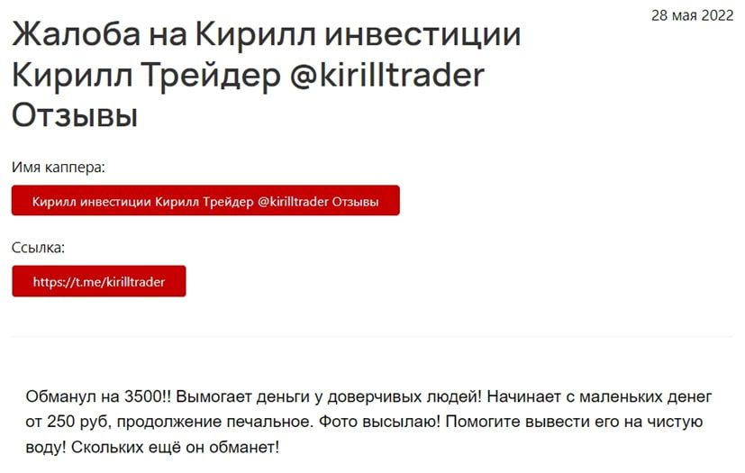 Для реальной оценки деятельности спекулянта нужно отталкиваться от отзывов на сторонних ресурсах. И тут картина не такая радужная. В интернете уже есть жалобы, где бывшие подписчики приводят доказательства мошеннической деятельности аналитика.