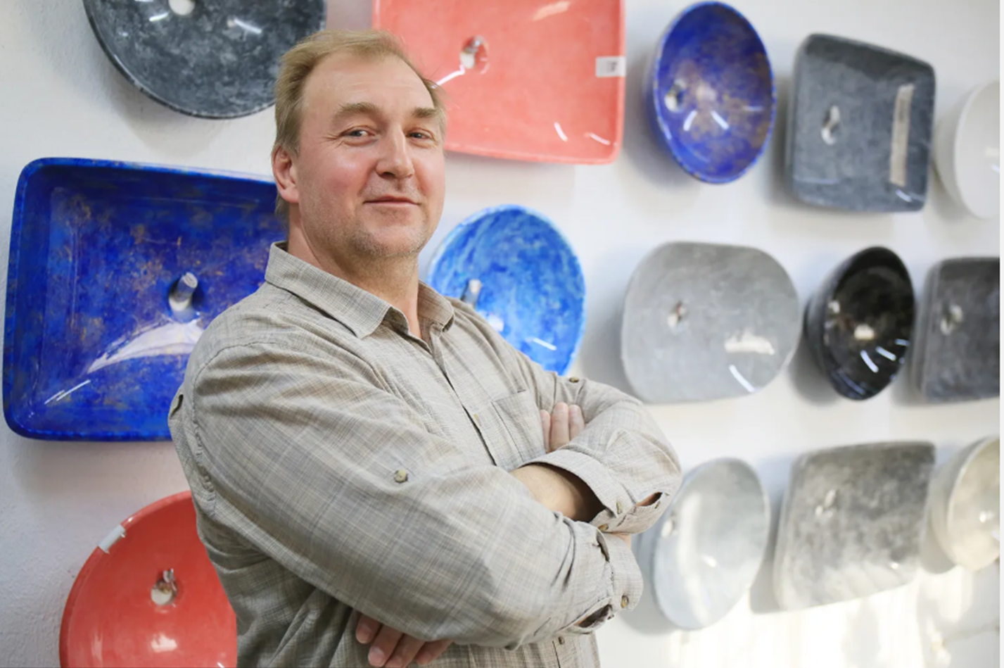 Свою первую раковину из жидкого камня Кирилл создал в 2015 году, а уже через 7 лет он стал основным поставщиком раковин и столешниц для отелей и ресторанов Казахстана. Свой путь начинал с покупки 5 кг эпоксидной смолы, из которой сам в гараже и сделал раковину. Далее на свой страх и риск, взял небольшой заказ от знакомого, затем его раковины посоветовали одному из строителей гостиницы. Сейчас Трофимов выполняет заказ на 20-30 раковин в месяц.