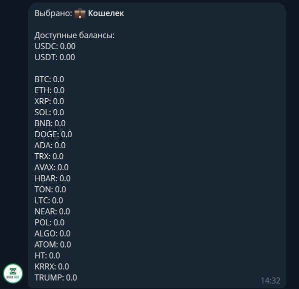 При этом KKRX Bot не выглядит как надежное решение для работы с криптовалютой. При создании кошелька пользователь получает только его адрес, сид-фразу ему не дают. Это значит, что крипта на балансе будет находиться под контролем разработчиков бота, которые могут и проводить с ней транзакции, и вывести монеты с аккаунта пользователя.