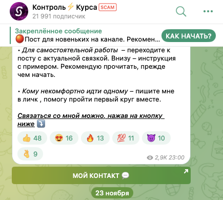 «Контроль курса» — тг-канал, владелец которого обещает делиться выгодными арбитражными связками. Наша редакция изучила информацию о нем самом и его предложении. В результате выяснили, действительно ли последователи админа данного ТГК зарабатывают деньги или их просто разводят.