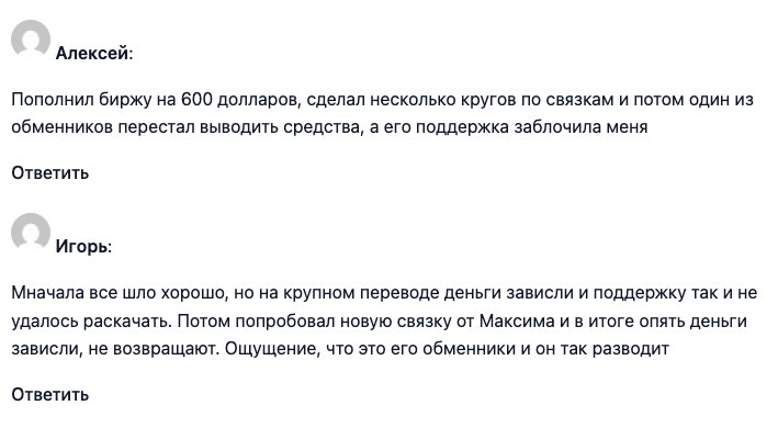 - все отзывы об арбитражнике Максиме являются негативными — авторы этих ревью пишут, что их развели на деньги;