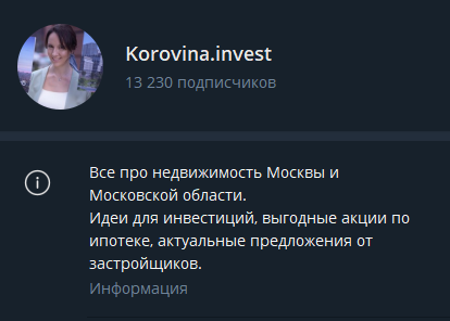 Тг-канал KorovinaInvest отличается наибольшей периодичностью публикаций, поэтому именно с его анализа мы начнем. Подписано на группу более 13 тыс. человек. Из странных моментов отметим отсутствие в описании ссылок на профиль либо самого автора, либо хотя бы менеджеров – никак с представителями ресурса связаться не получится.
