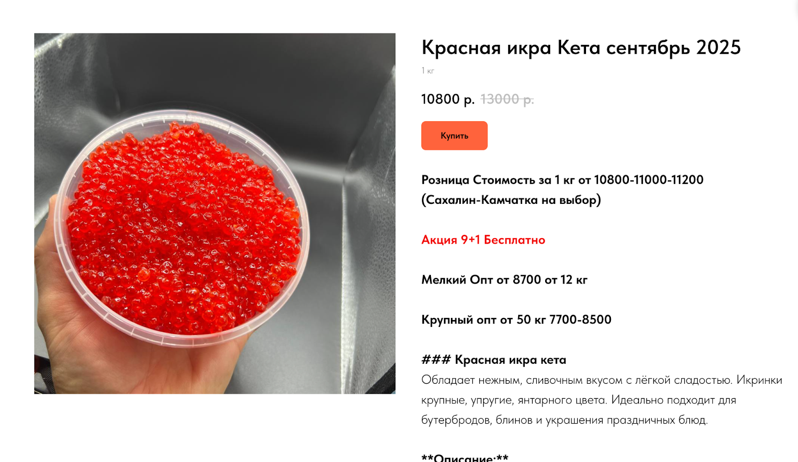 В ленте канала доминирует коммерческий контент: фотографии банок, указание сорта (горбуша/кета/нерка), цена за банку и минимальная партия. Посты часто сопровождаются акцентами на свежую партию, ограниченное количества и акции — классический маркетинговый прием для ускорения решения покупателя. В описании магазина Красная Икра часто встречаются формулировки про возможность доставки по всей РФ и ссылки на бота или прямые контакты в WhatsApp.