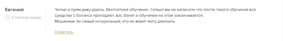 Пользователи в интернете жалуются, что средства, которые они вносят в обязательный депозит, исчезают с их баланса. Кроме того, им не предоставляется обещанное обучение. Эти факты подтверждают, что человек, выдающий себя за трейдера, на самом деле является мошенником, создающим иллюзию работы, в то время как на самом деле он присваивает себе деньги клиентов. На претензии со стороны бывших клиентов Крипто Торгаш не реагирует.