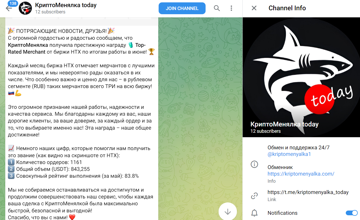 В сообществе админы информируют о функционале и новостях проекта. 9 июня был выложен пост о том, что сервис получил награду Top-Rated Merchant от HTX. Помимо этого, аудиторию предупреждают о различных видах мошенничества, сообщают о главных изменениях в мире криптовалют и финансов. Ссылок на другие социальные сети не оставлено.