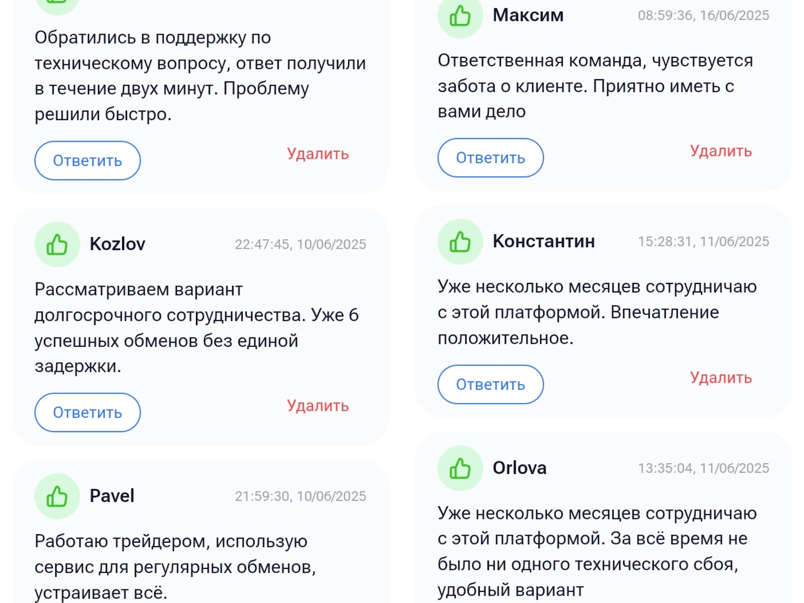 На независимых ресурсах есть отзывы о том, что Крипто Менялка (Криптоменялка) предоставляет качественную поддержку клиентов, и обмены происходят без задержек.