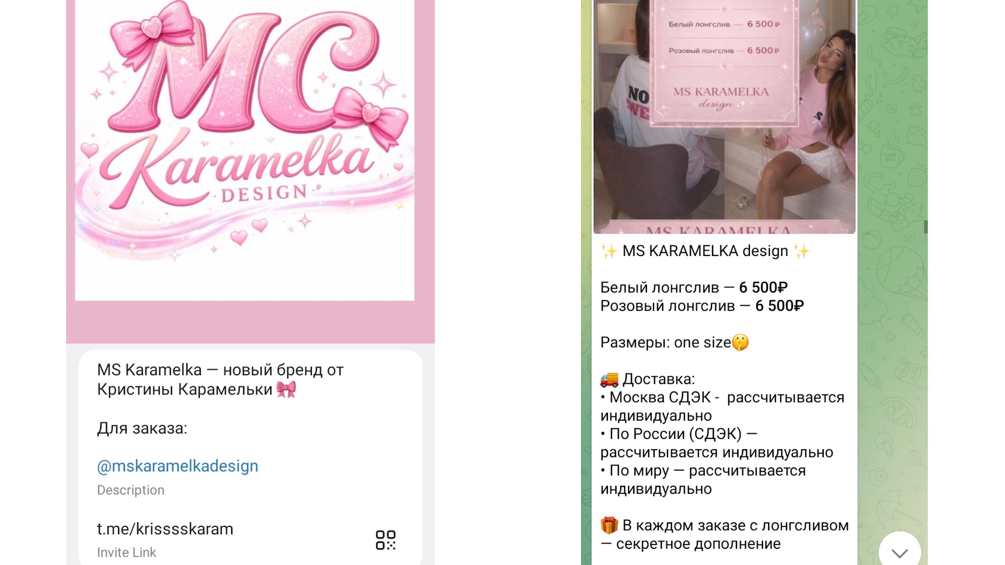 К каждому заказу обещают секретное дополнение. Когда будут выпущены новые элементы одежды, неизвестно. Из условий магазина, доставка происходит через СДЭК. Можно ее оформить в любой город РФ. Стоимость рассчитывается индивидуально. Насколько известно, доступна также курьерская доставка по России, и она обойдется от 690 рублей. Магазин Krisssskaram (Ms Karamelka Design) также проводит отправку за границу. Однако сроки и цена доставки будет определяться индивидуально.