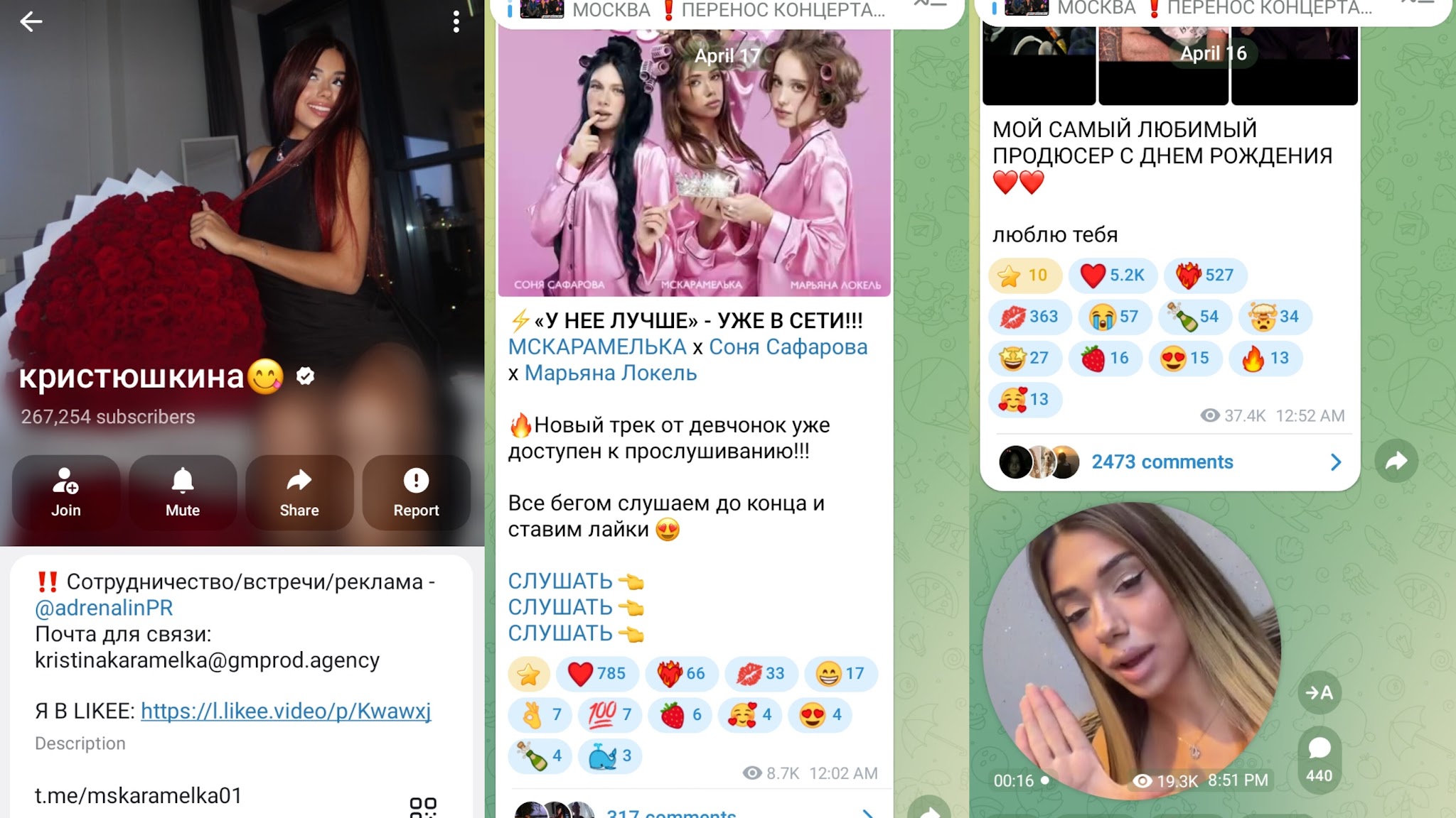 У Кристины есть Телеграмм-канал, на который подписано более 267 тыс. пользователей.