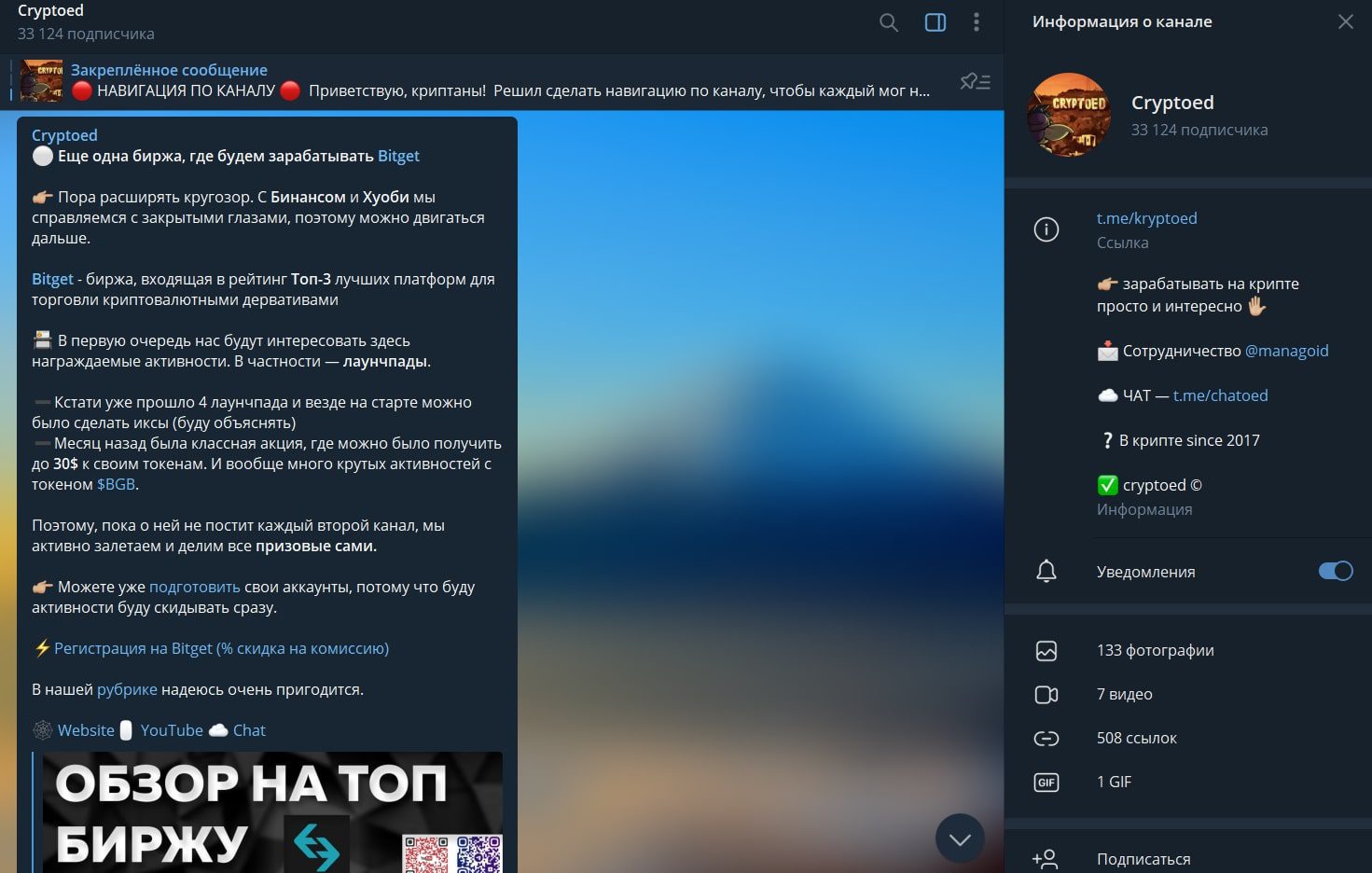 Что касается контента, то он весьма однообразен. Значительная часть постов посвящена акционным предложениям от бирж и отдельных компаний, торгующих криптовалютой.