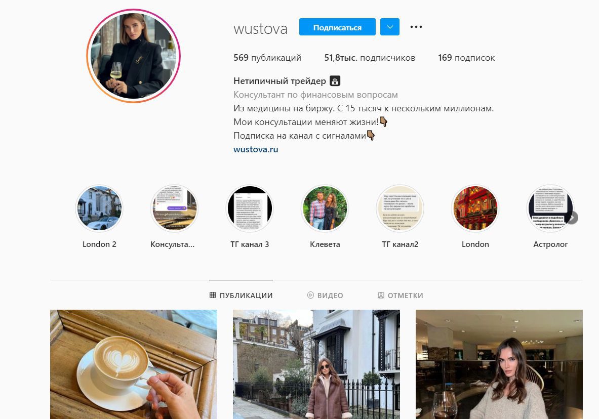 Трейдером и инвестором Ксенией Шустовой для коммуникации с клиентами создано сообщество wustova в Инстаграме и Телеграме. По заявлениям девушки, все клиенты заработают свой первый миллион имея всего пару тысяч в кармане. Учитывая, что такими громкими фразами разбрасываются мошенники нас заинтересовала деятельность автора проекта. О том, что в реальности предлагает спекулянтка подписчикам, читайте в нашем новом обзоре.