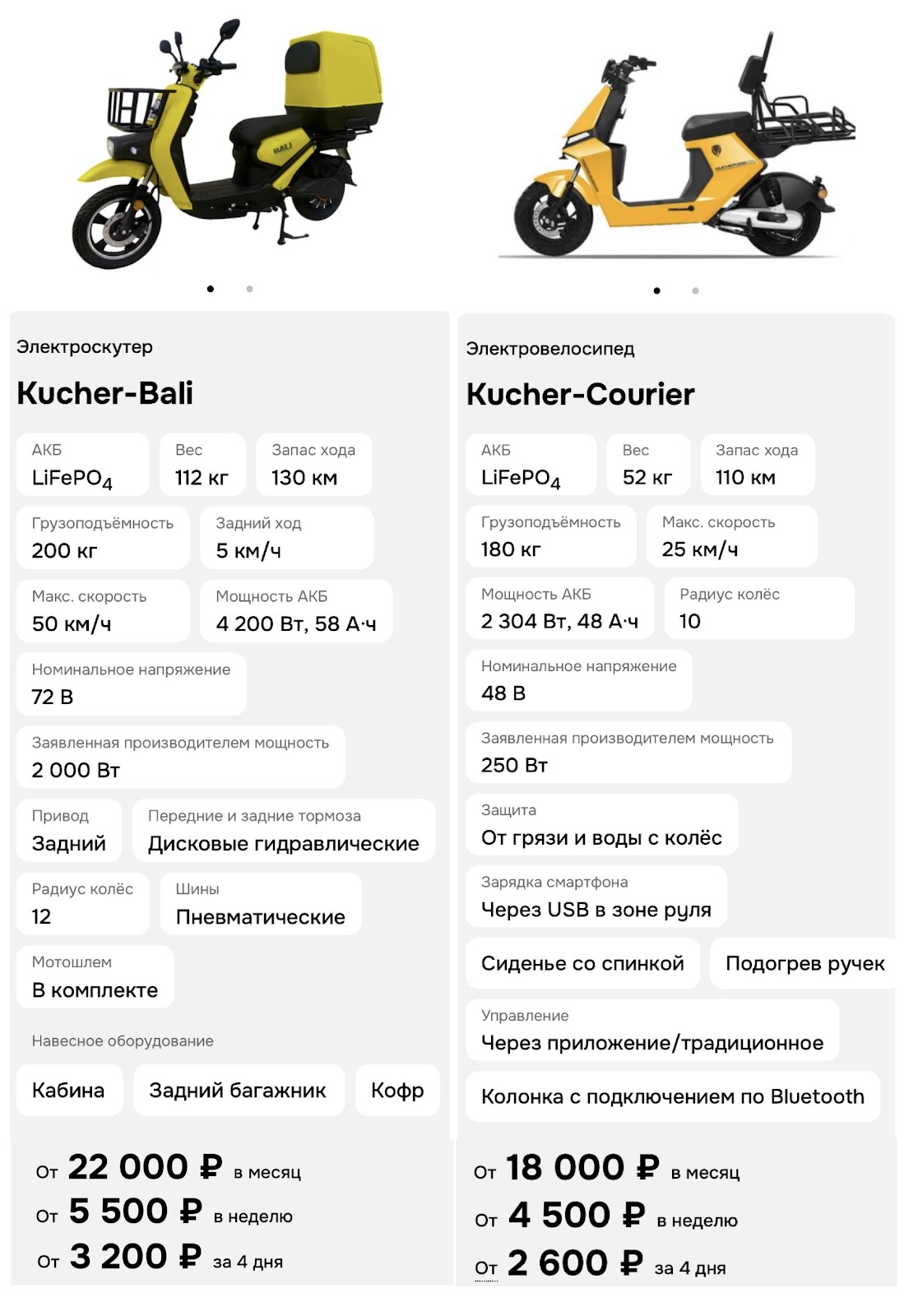 • Разные тарифы по аренде.