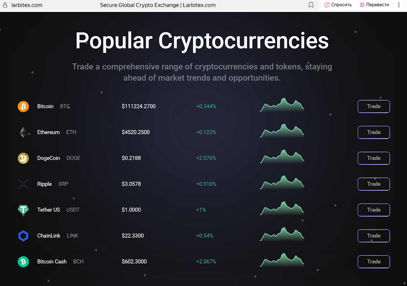 Larbitex является платформой, которая предлагает инструменты для торговли цифровыми активами. Сайт обещает доступ к более чем 350 криптовалютам и низкие комиссии. Однако за заявлениями скрываются проблемы, которые указывают на риски. В этой статье мы разберем функционал проекта и выясним, насколько обещания Larbitex соответствуют реальности.