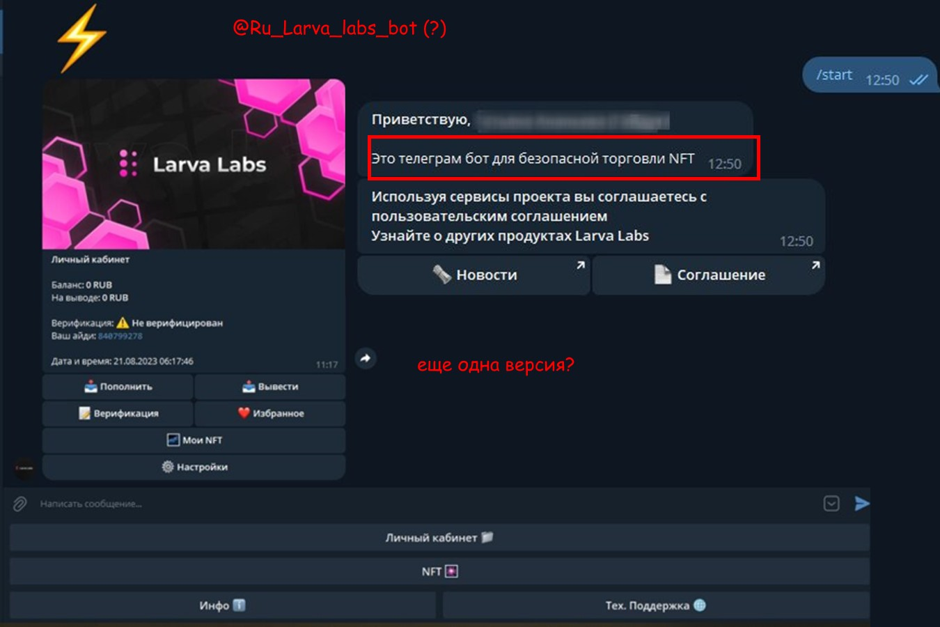 Наткнулся на этот инвест-бот решил проверить. Перекинул 2К, сделал пару сделок. На балансе вроде +, но как только нажал вывести ОШИБКА! 🤬 Потом вообще исчез баланс! Разрабы молчат, саппорт не отвечает. Этот бот просто ПАРАЗИТ по имени Larva Labs. НЕ ВЕДИСЬ! ❌