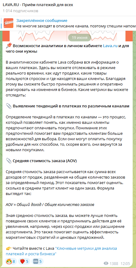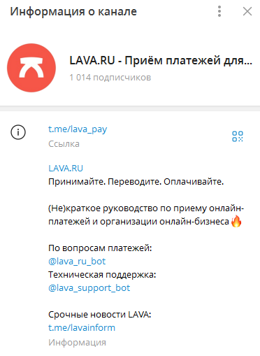 В Телеграме проект представлен на канале Lava pay. На паблик подписано 1 014 юзеров.