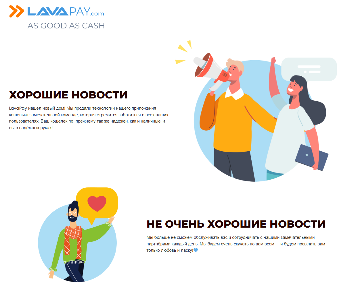 Попытка стабилизировать сервис через обязательную верификацию провалилась. В финале пользователи столкнулись с волной блокировок аккаунтов, замороженными средствами и зависшими переводами. В итоге владельцы приняли решение продать бизнес, о чем и сообщили на своем официальном сайте lavapay com.