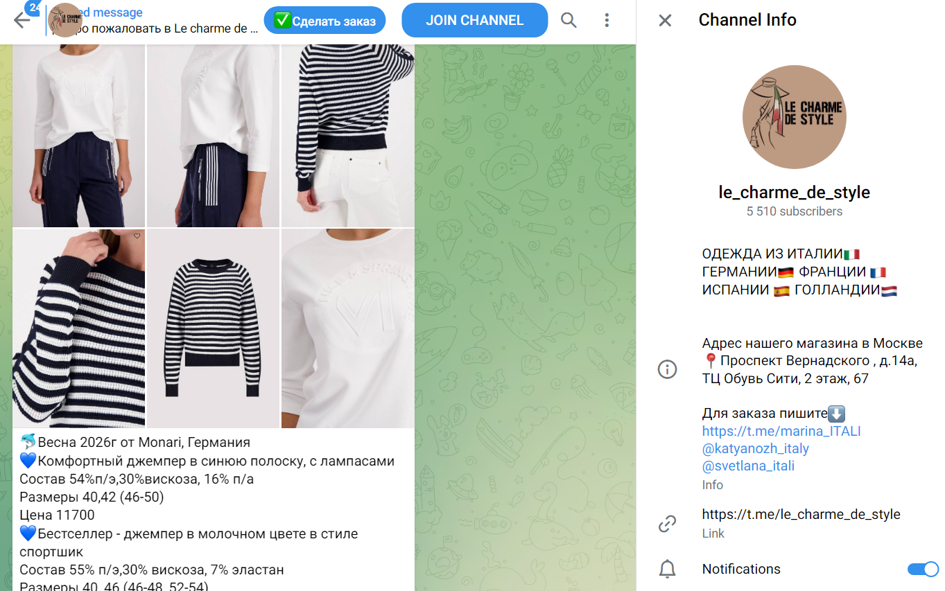 Telegram канал Le Charme de Style функционирует с февраля 2022 года, и здесь 5.5k подписчиков.