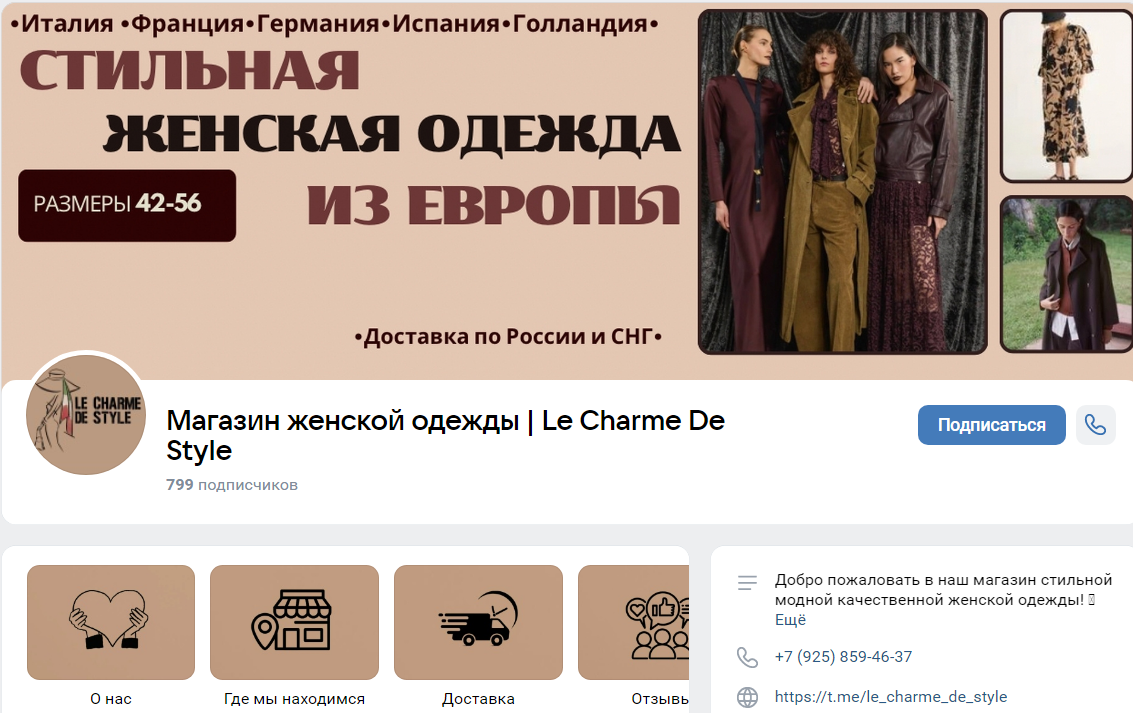 Ле Шарм де Стайл — это женский магазин одежды из Италии, Франции и прочих стран, который располагается в Москве. В социальных сетях основатели делятся новым ассортиментом и особенностями товаров, обещая внимательное отношение к каждому клиенту. Сделать заказ можно не только в магазине, но и с помощью доставки, и далее мы расскажем о деятельности Le Charme de Style подробнее.