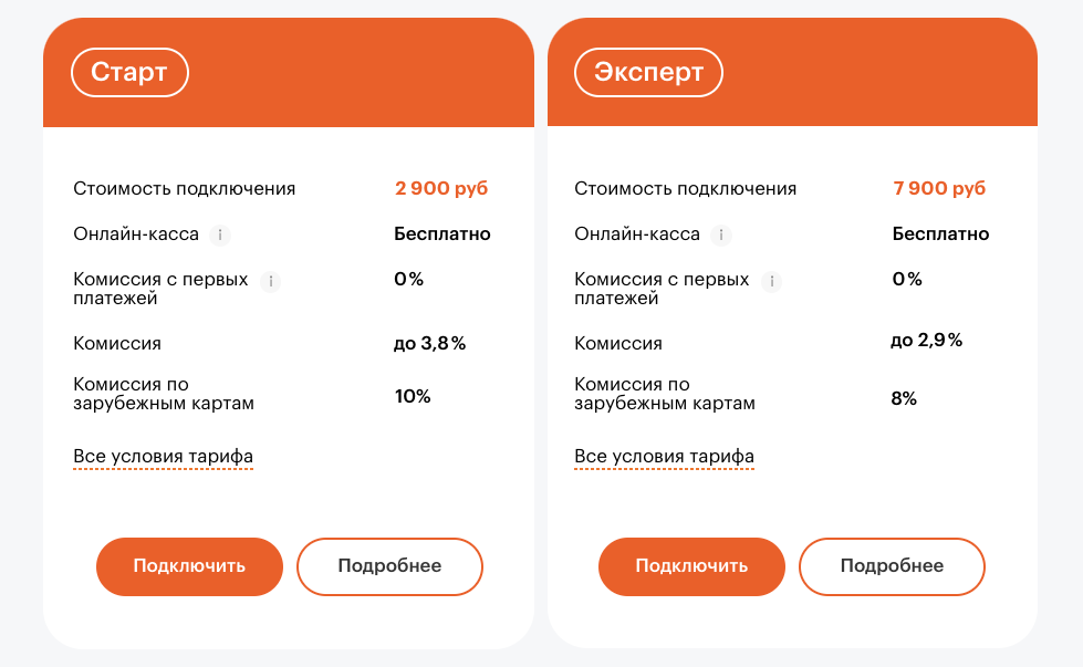 Платежная система работает с любыми банковскими картами. Комиссии за прием расчетов с российских карточек составляет до 3,8%. Если клиент оплачивает покупку иностранной картой, сервис взимает 10%.