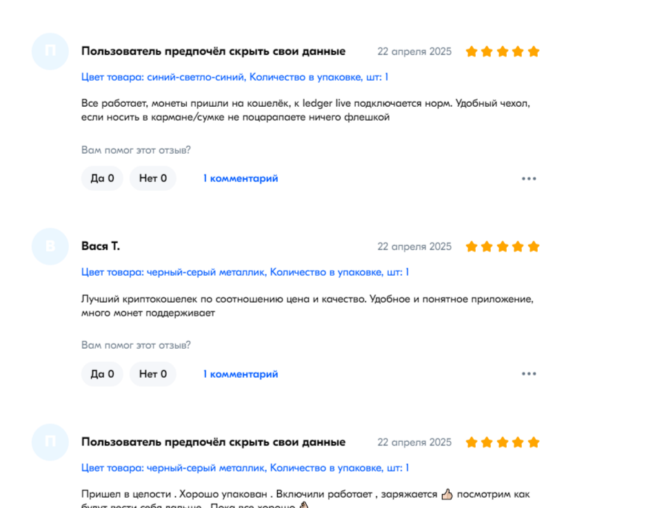 Холодный кошелек «Ледгер Нано С» за все время существования получил множество различных отзывов. Большая часть из них – положительные. Клиенты довольны покупкой девайса, простотой его использования и стильным внешним видом.