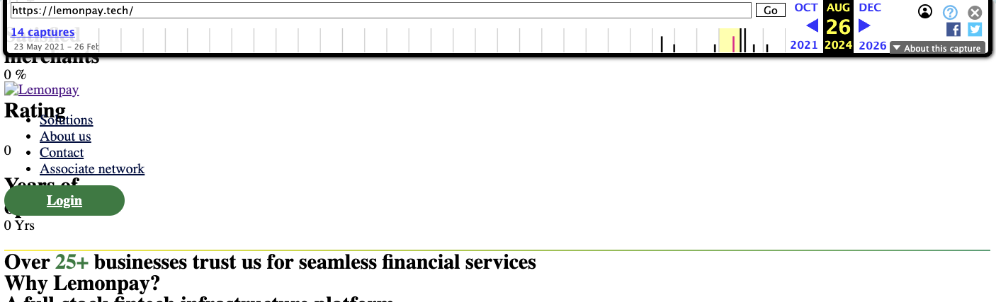 С целью подтвердить, что «Лемон Пэй» — это не сервис-однодневка, мы запросили снимки его сайта из WayBack Machine. Они показали, что уже в августе 2024-го по адресу lemonpay tech размещался ресурс интересующей нас платформы.То есть рассматриваемый сервис работает уже несколько лет. Тем не менее, в нашем случае это еще не говорит о его надежности.