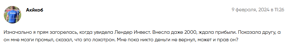 Выводы: Лендер Инвест проект мошенников или нет?