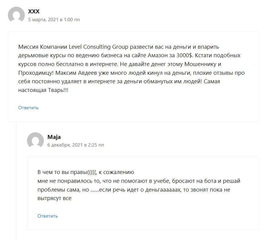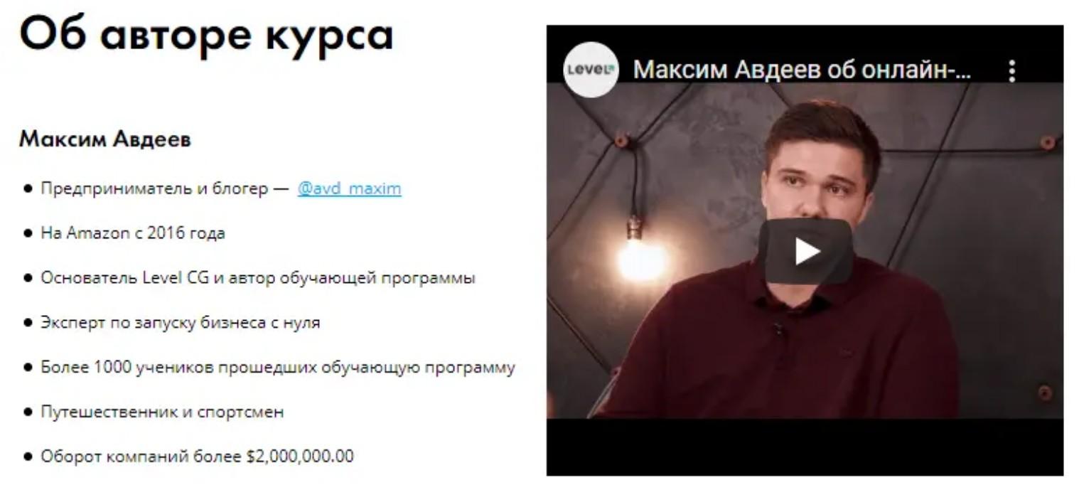 Фирма Level CG представлена на сайте levelamz com. Это консалтинговое агентство, которое с 2016 года оказывает услуги бизнесменам, решающим торговать на известной американской площадке Amazon. Максим Авдеев – директор этой фирмы. Он же разработал для предпринимателей обучающий курс под названием AMZ SALES FORMULA0.