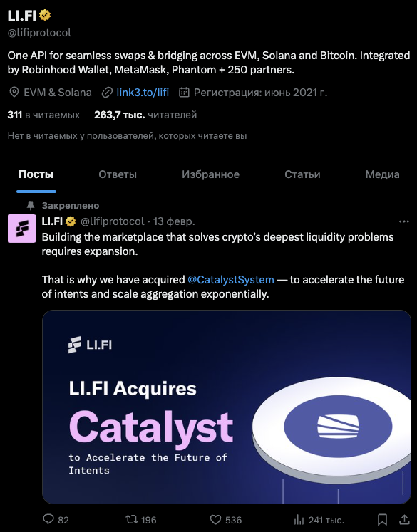 На страницу Li Fi, lifiprotocol в Twitter подписано около 263,7 тысяч читателей. Выложенный 13 февраля и закрепленный пост за две недели нахождения в ленте был просмотрен примерно 241 тысячу раз.