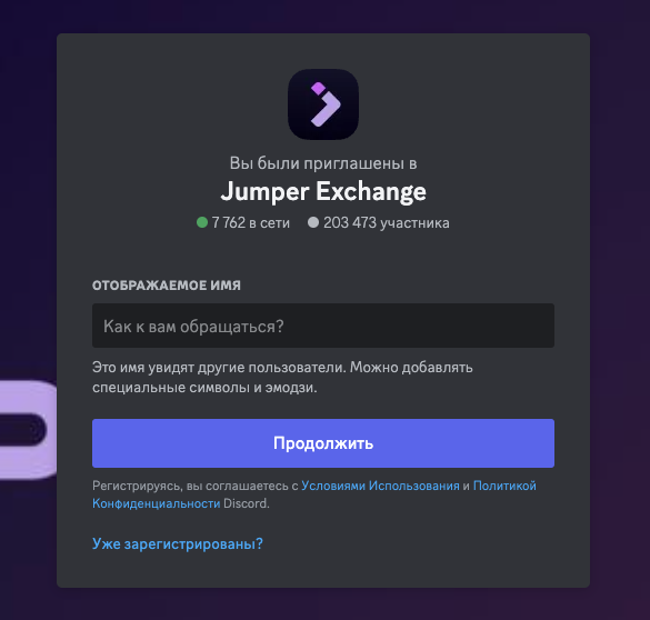 У команды основателей проекта есть сервер в Discord — Jumper Exchange. На обновления в нем подписано 203,5 тысяч юзеров. Онлайн находится примерно 7-10 тысяч пользователей.