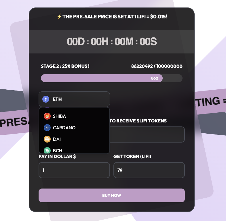 На 26 февраля 2025-го года идет второй раунд предпродажи монеты. Основатели LiFinance предлагают 25% процентный бонус инвесторам, которые закупают монету LiFi на пресейле.