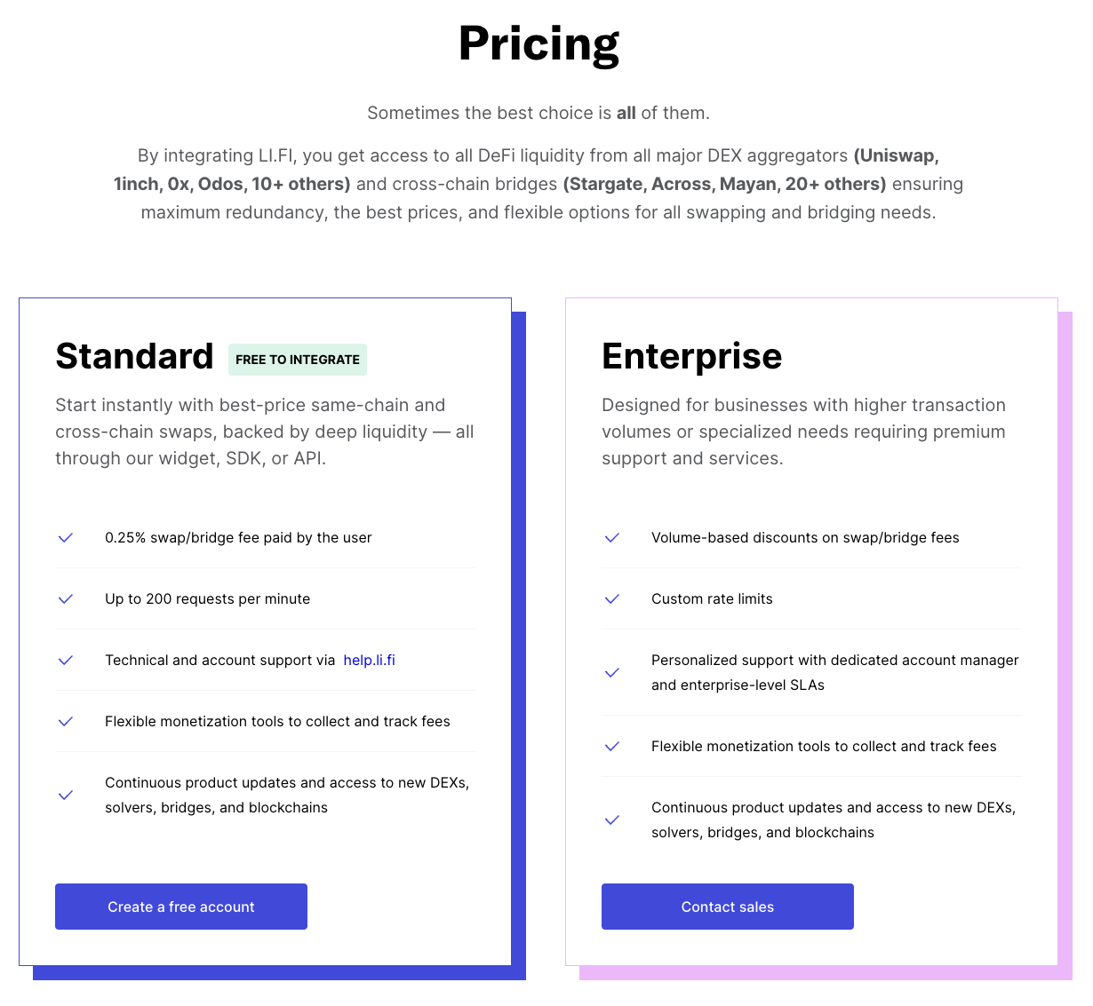 При использовании бесплатного базового тарифа система взимает комиссию в 0,25% за использование мостов и совершение свопов. Заявлено, что экосистема обеспечивает поддержку до 200 запросов в минуту от каждого юзера.