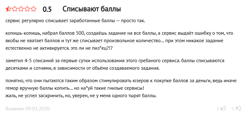По итогам оценки сервиса LikeInsta ru, где людям предлагают услуги по накрутке ботов в соцсетях и заработок баллов на простых заданиях, можно выделить следующие минусы:
