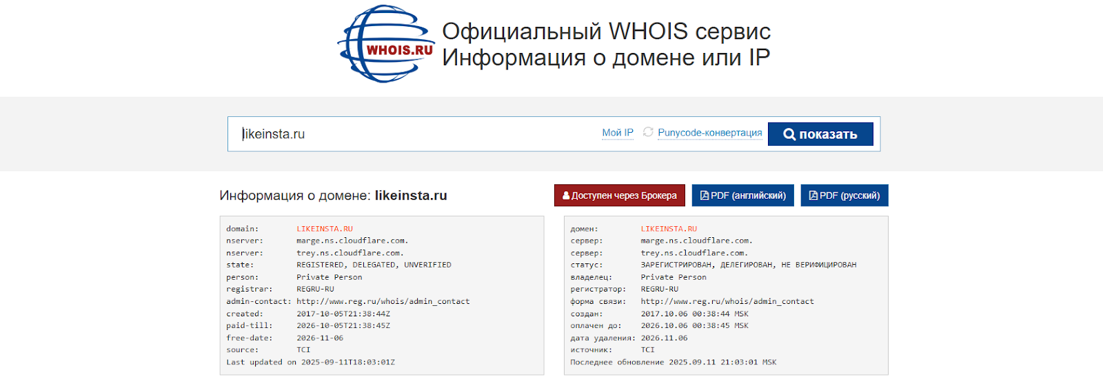 Площадка Лайк Инста ру была создана анонимными разработчиками, а домен ресурса зарегистрировали в 2017 году. Вдобавок никаких социальных сетей команда не ведет, а единственный способ сотрудничества это использовать почтовый адрес Help LikeInsta ru. Это говорит о низкой прозрачности, ведь никакого чата для клиентов нет, а узнать о текущих проблемах сайта невозможно. Никаких новостных форумов также нет.