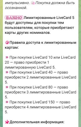 В январе 2026 года администрация Live cash back сообщила, что объем выделенных сертификатов от маркетплейсов значительно снизился. Карта с минимальным взносом в 5 тыс. стала лимитированной – право доступа к данному офферу теперь есть только у пользователей, которые приобретают карты других номиналов.