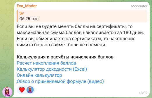 Заявки на обмен баллов на сертификаты принимаются по понедельникам до 14:00, выдача сертификатов производится по пятницам. Стоимость выпуска второй карты повышается на 25% от номинала, а перевыпуск обойдется дороже на 10% от полной цены предыдущей карты.