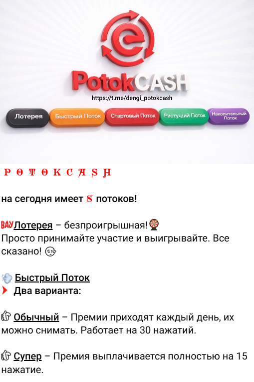 Аферист-зазывала прославляет пирамиду на YouTube «Роман в Потоке | Cashflow», а также телеграмм-канале «CashFlow | Деньги есть всегда». Помимо этого, в мессенджере функционирует бот «Свободный человек 2 кор 5:17» с помощью которого жертв заводят на платформу по реферальной ссылке.