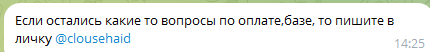 Взаимодействие с этой скам-платформой осуществлять однозначно не стоит. Clousehaid является мошенником и просто разводит доверчивую публику на деньги. Поэтому мы призываем граждан держаться подальше от телеграм-лохотрона «Взрослые Дамы» и ни в коем случае не перечислять денежные средства аферисту, предлагающему на выбор несколько способов оплаты. Также определенно не стоит переходить по ссылкам, которые мошенник предоставляет аудитории.