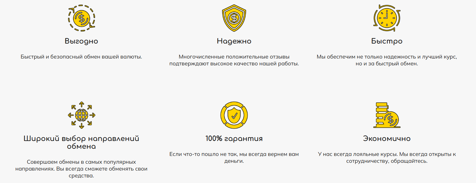 Сайт обменника представляет собой бюджетный одностраничник. С какого года он работает, не написано. Но в ходе проверки удалось выяснить, что домен веб-ресурса был зарегистрирован 15 января 2019 года. Это более 7 лет, что может говорить в пользу обменника. Но нужно учитывать, что домены часто перепродают. Поэтому через них могут продвигать разные проекты в разное время.