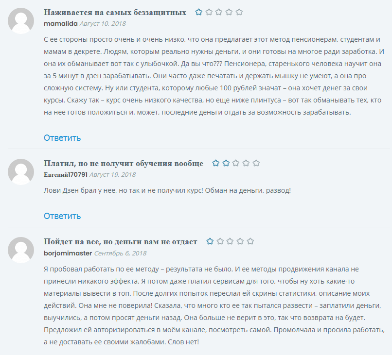 Купленные курсы не привели к улучшению финансового положения, и люди жалуются на то, что Виктория их просто развела на деньги.