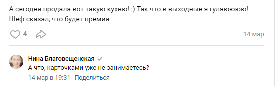 На ВК-странице владельца обучающей платформы в одном из последних постов находится информация о продаже кухни.