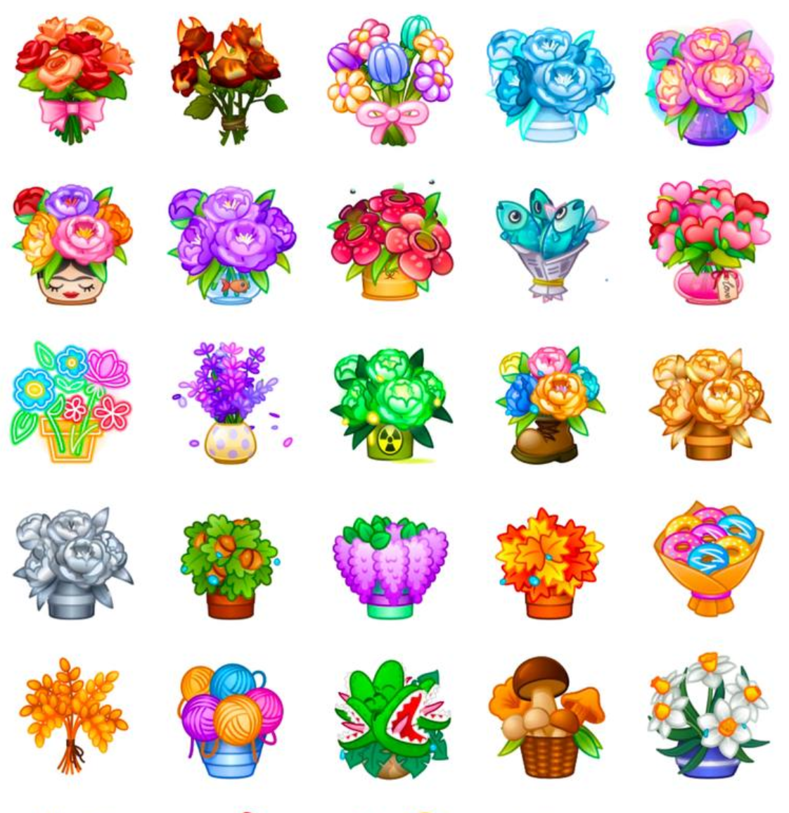 Стикеры для телеграмм-аккаунтов сделаны в форме цветочного букета, однако есть и оригинальные варианты. Например, в виде композиции из морковок, грибов или сердечек. Пользователи Tg могли приобрести 180 000 экземпляров, запуск проекта приурочен к Дню влюбленных 14 февраля.
