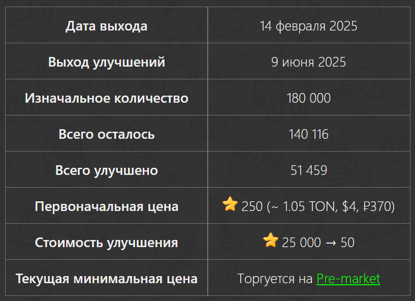 Коллекция базируется на блокчейне TON, разработана специально для Telegram. Стикеры можно использовать в профиле, переводить их в коллекционные предметы, а также продавать, передавать и дарить другим пользователям.