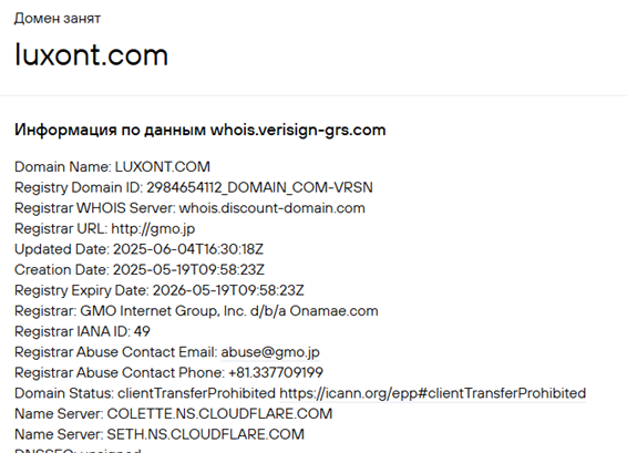 Но эта информация не соответствует действительности, так как доменное имя было создано в конце мая 2025 года.