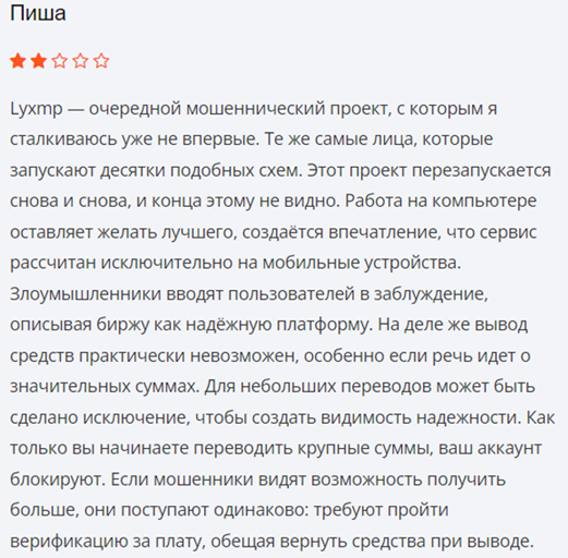 Настоящие отзывы о Lyxmp от реальных инвесторов