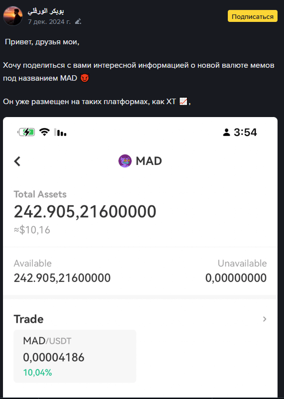 Чтобы понять токен, нужно посмотреть, как он продвигался. MAD Coin позиционировали как новый способ заработка. Типичные заходы: «больше, чем просто монета», «способ жизни», «сообщество единомышленников».