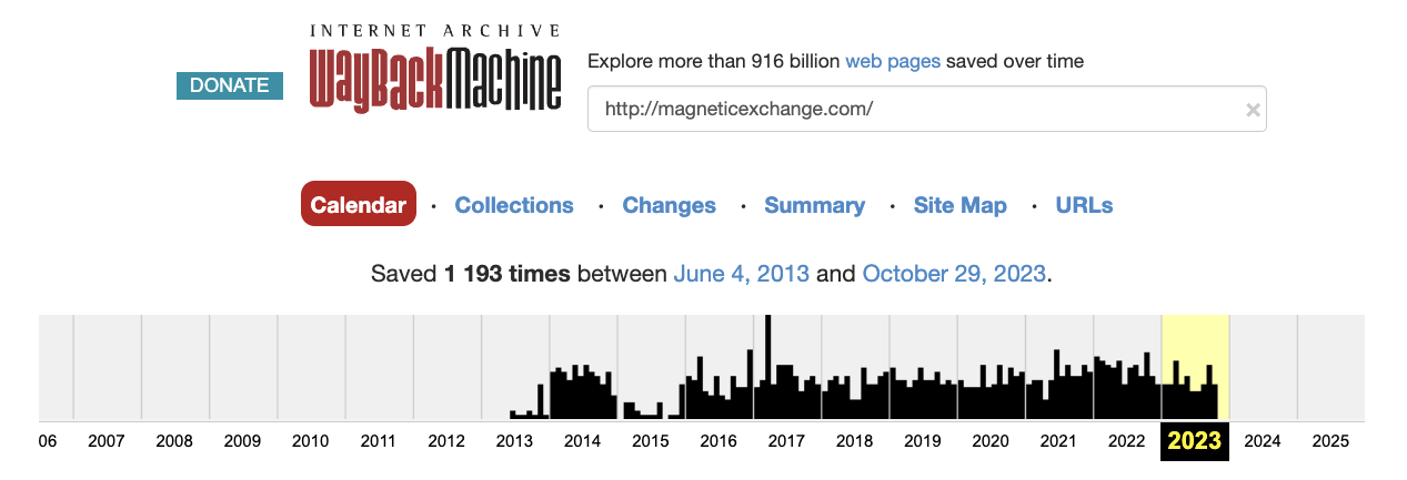 Чтобы убедиться, что обменник действительно работал продолжительное время, мы запросили данные его доменного имени из сервиса WayBackMachine. Узнали, что еще в 2013-м году по адресу magneticexchange com располагался именно ресурс рассматриваемого эксчейнджера.