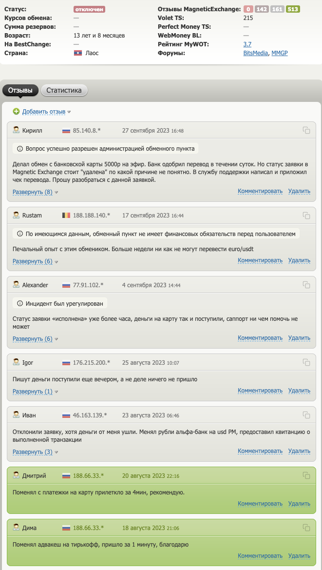 - на сервисе BestChange есть большое количество негативных отзывов об обменнике «Магнетик Иксчендж» — значит, у платформы были проблемы с сервисом;