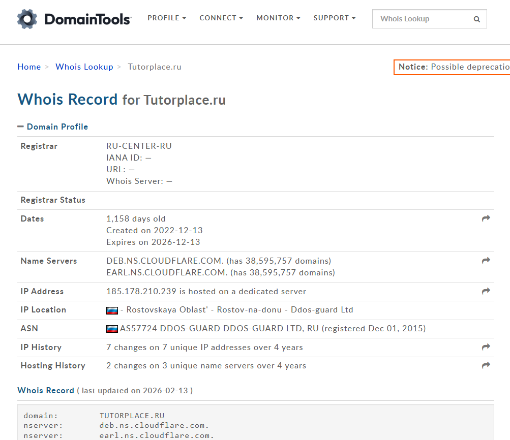 После всех этих вопросов, клиента подводят к последнему, после которого бот перебрасывает на стороннюю площадку TutorPlace. По данным Whois домен зарегистрирован в декабре 2022 года и на февраль 2026 года ему три года. Владельцем указано ООО «Диджитал контент».