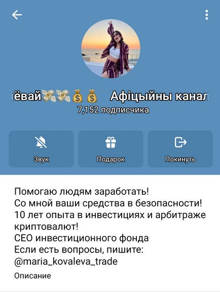 Maria Kovaleva Trade — это личный аккаунт в Телеграмме, в который загружено уникальное фото девушки, не встречающееся на других ресурсах. Она пишет, что ее зовут Марыя Кавалёва и она является CEO инвестиционного фонда.