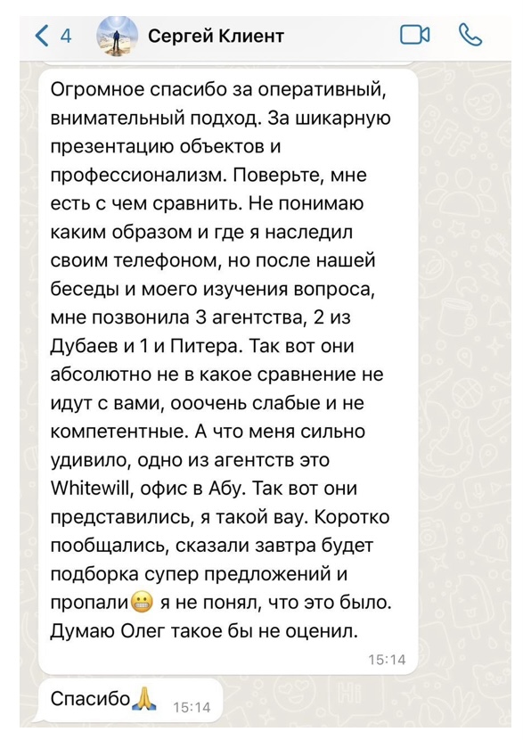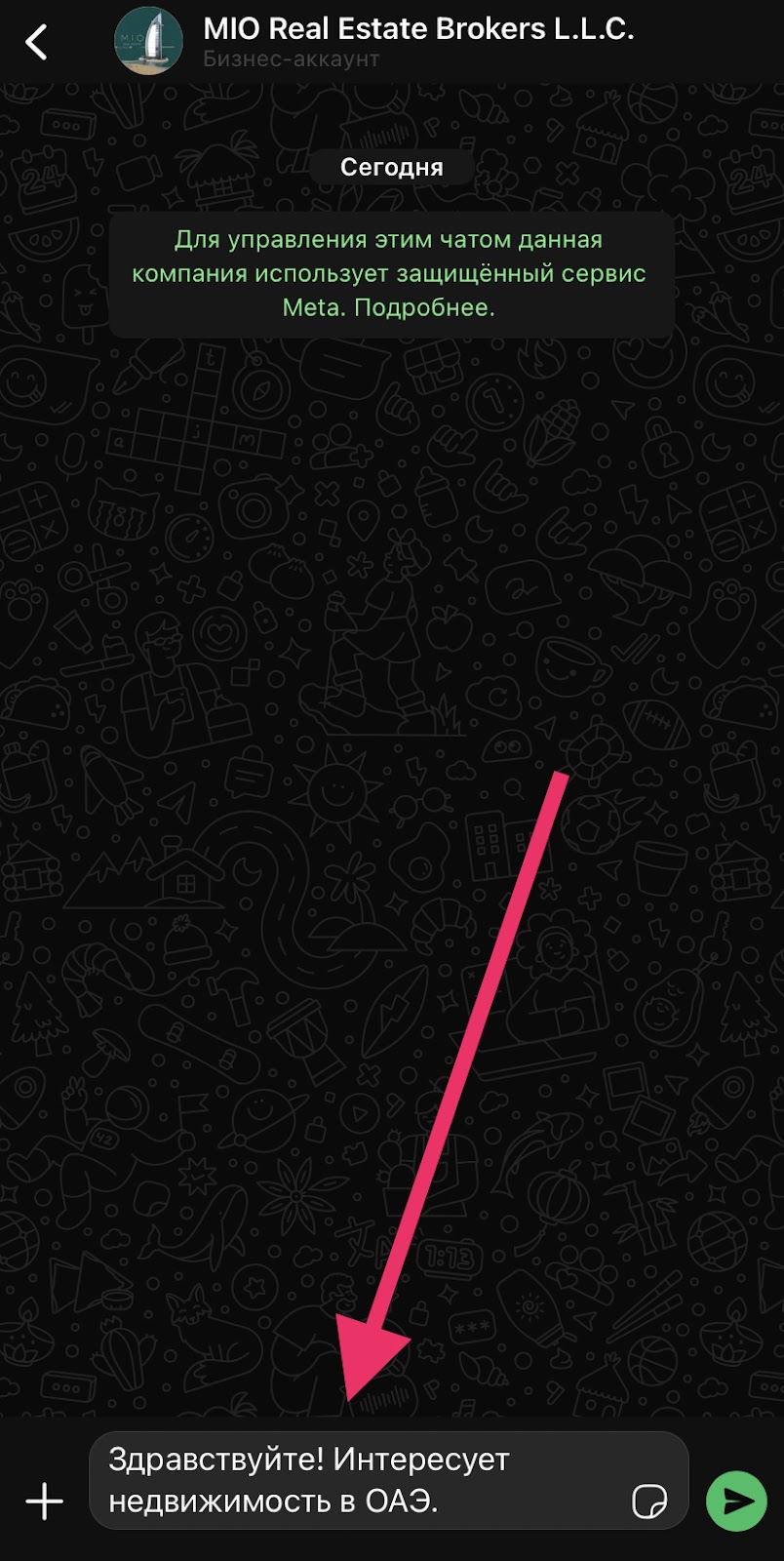 Дополнительные средства связи — электронная почта Sales mio estate com и ссылка на WarsApp с уже заготовленными шаблонным сообщением.